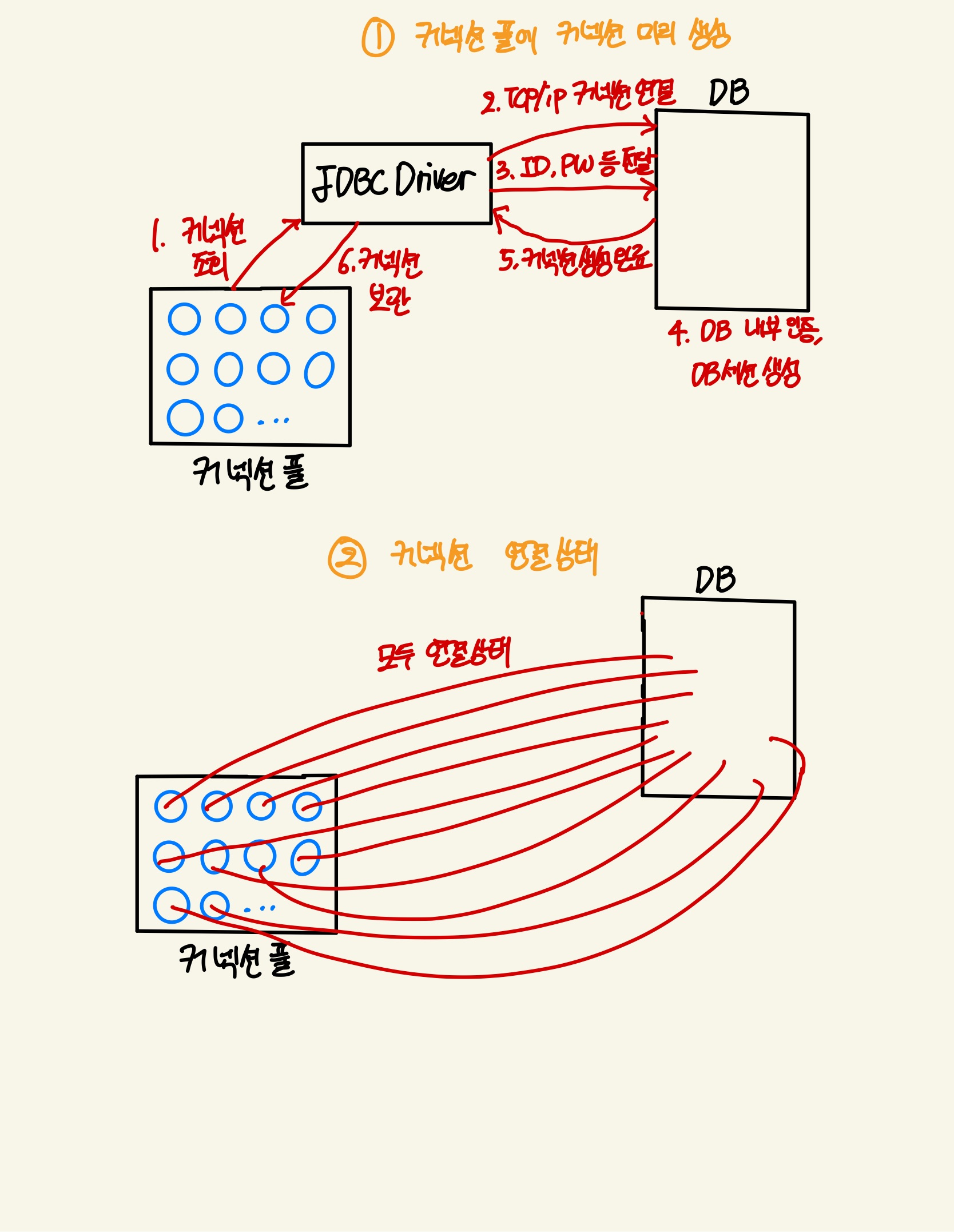 - JDBC 드라이버는 커넥션풀에 커넥션을 조회한다.